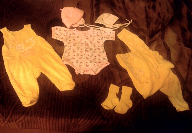 У нас будет бодик, велюровый костюмчик, носочки, чепчик и теплая шапочка.Завернем в одеяло-конверт на синтепоне, теплое.