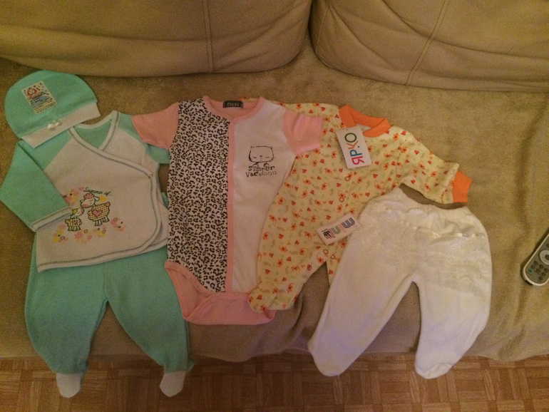 это все купленные нами вещи за период беременности (ну не совсем все, есть еще пеленки, шапочки, конверт, полотенца)