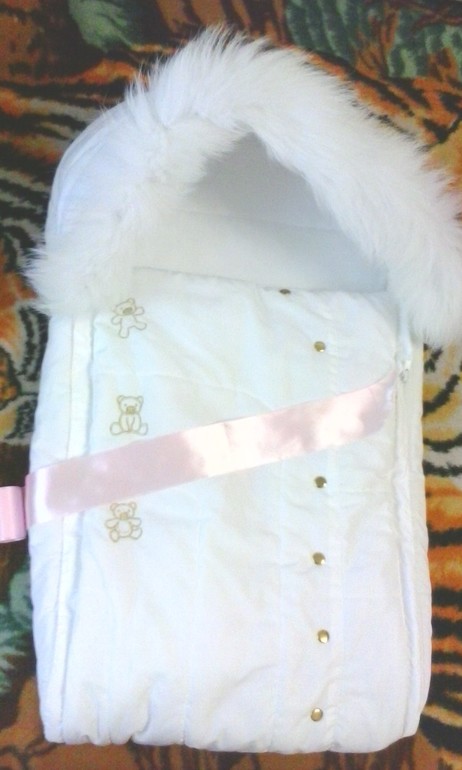 а в машине вы просто укрывать будете или без кресла поедете? Я шила такой конверт сама, и мне совсем не хочется его прорезями портить ))) Так что решила еще сшить зимний комбез для машины :) ездить много будем :) А конвертик будем использовать для коляски только.