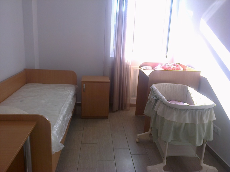 Собственно палата. Стол со стульчиком, тумбочка, пеленальный столик, люлька и кровать) Над кроватью есть бра. Кровать нормальная) Спалось на ней лично мне хорошо)