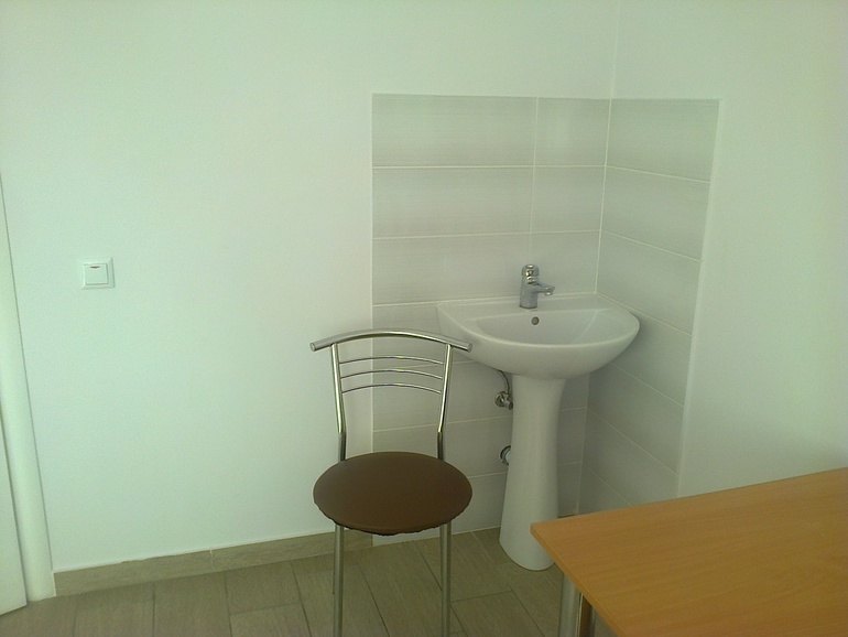 Я лежала в стандартном блоке, на 2 одноместные палаты) Войдя в блок попадаешь в небльшой предбанник, по одну сторону там душ, по другую туалет.