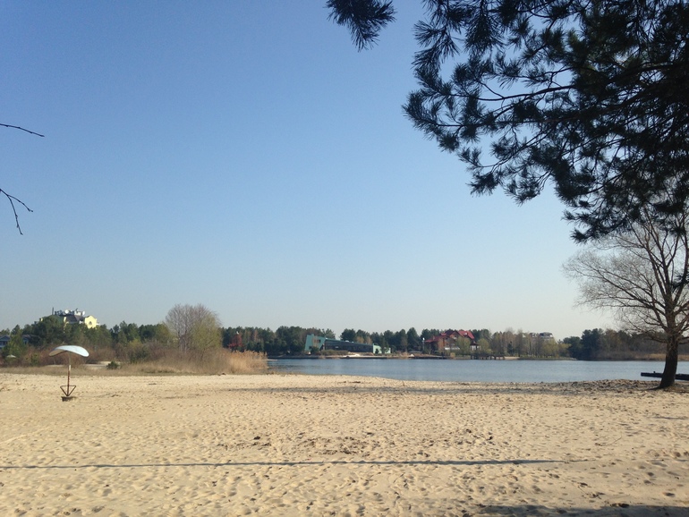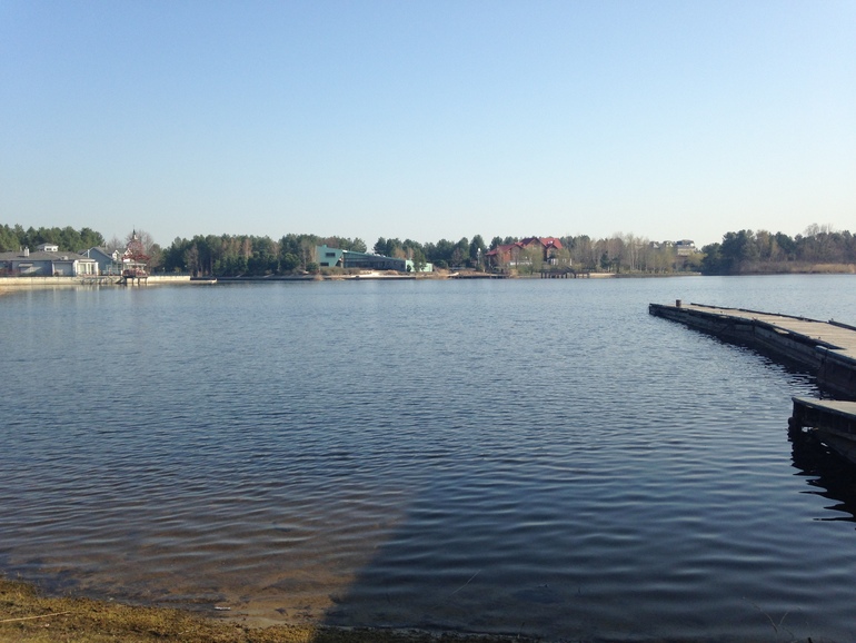 На противоположном берегу видны роскошные дома с "приватными" выходами к воде. Сразу ощущается контраст между ними и пляжем санатория, пока ещё доступным простым смертным. :)