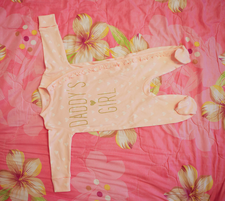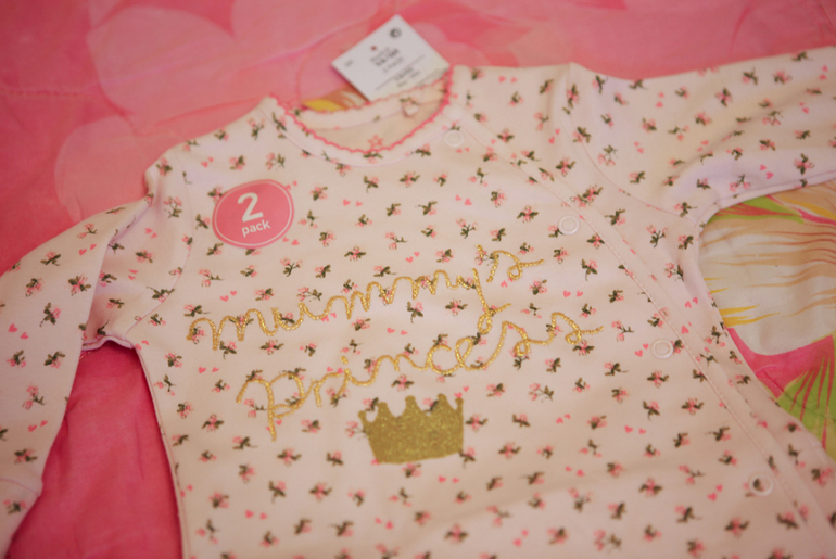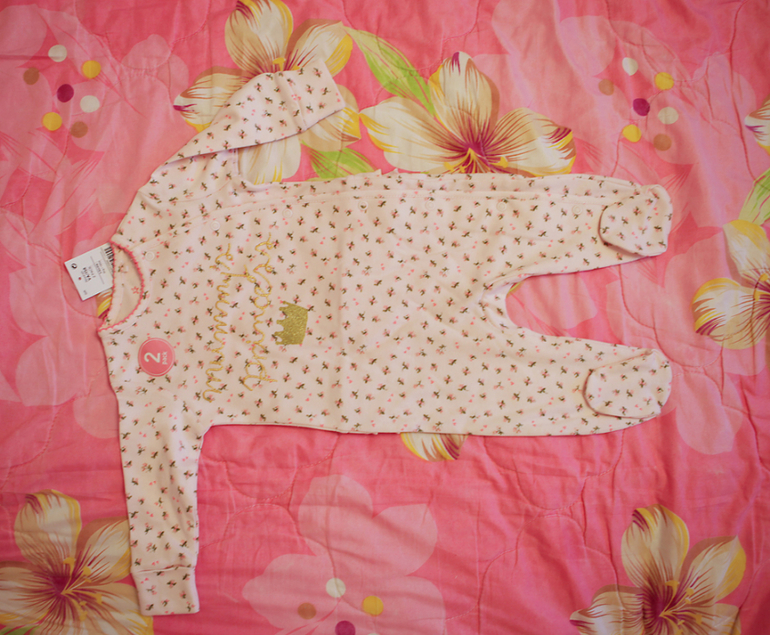 Мамина принцесса. С рюшами на попе))) При заказе даже не обратила внимания на то, что рисунок на этом слипе совпадает с рисунком на комбезе)