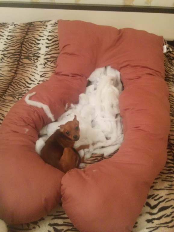 А вот что сделала наша тойша с моей подушечкой, которой я так и не успела насладиться: