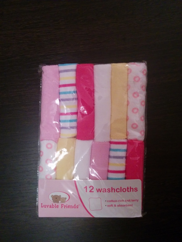 Набор полотенечек. Вообще-то я заказывала зелененькие, а пришли вот такие розовые девчачьи милости. Оверлочены по периметру, но не на 100% аккуратно. Для вытирания срыгиваний подойдет прекрасно.