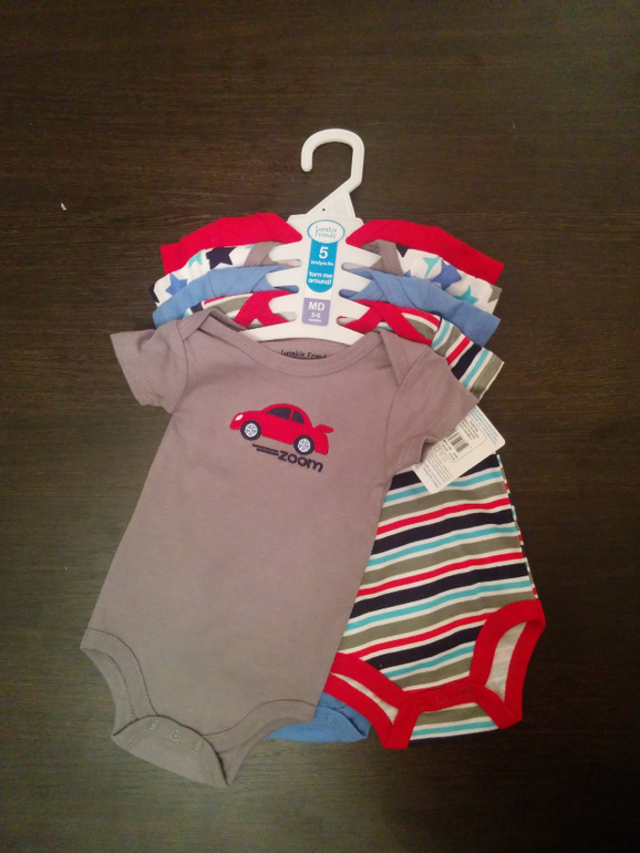 2. Набор бодиков Luvable Friends - 5 шт. Хлопок. Брала на 3-6 месяцев. Красивые и классные. Кнопочки железные. Все на вешалочках, очень аккуратненько.