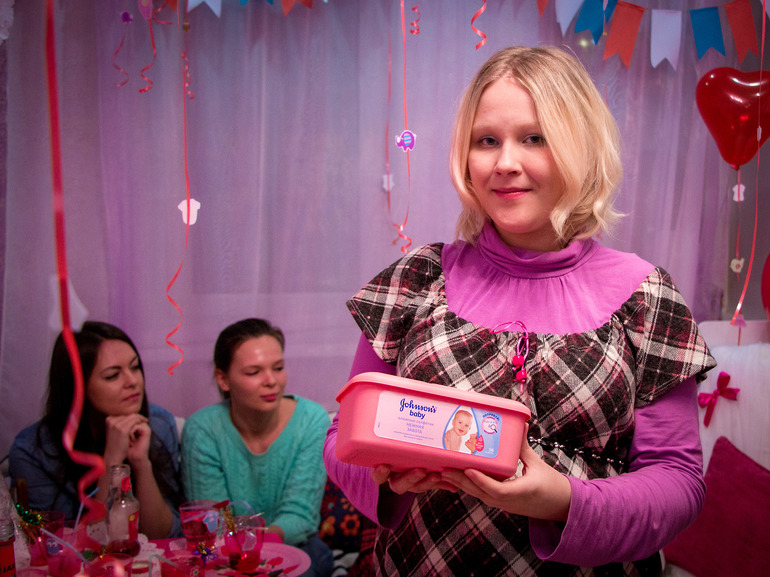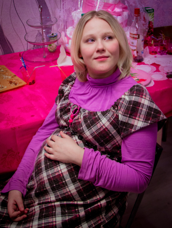 в основном все проваливались на моменте закрепить пеленку)))короче я посмеялась от души, а потом вечером припала что не готова к детям потому что не умею пеленать и вообще не знаю смогу я памперс то одеть на нее))))следом был конкурс под кодовым названием "покажи даше насколько солидно она выглядит со стороны", он заключался в том что все брали ниточку и отрезали кусочек, который должен совпасть с моей окружностью живота)