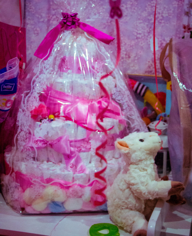 подарки, ТОРТ ИЗ ПАМПЕРСОВ КАК В МОИХ МЕЧТАХ)), розовые стаканчики, красивущий плакат Настиного производства!