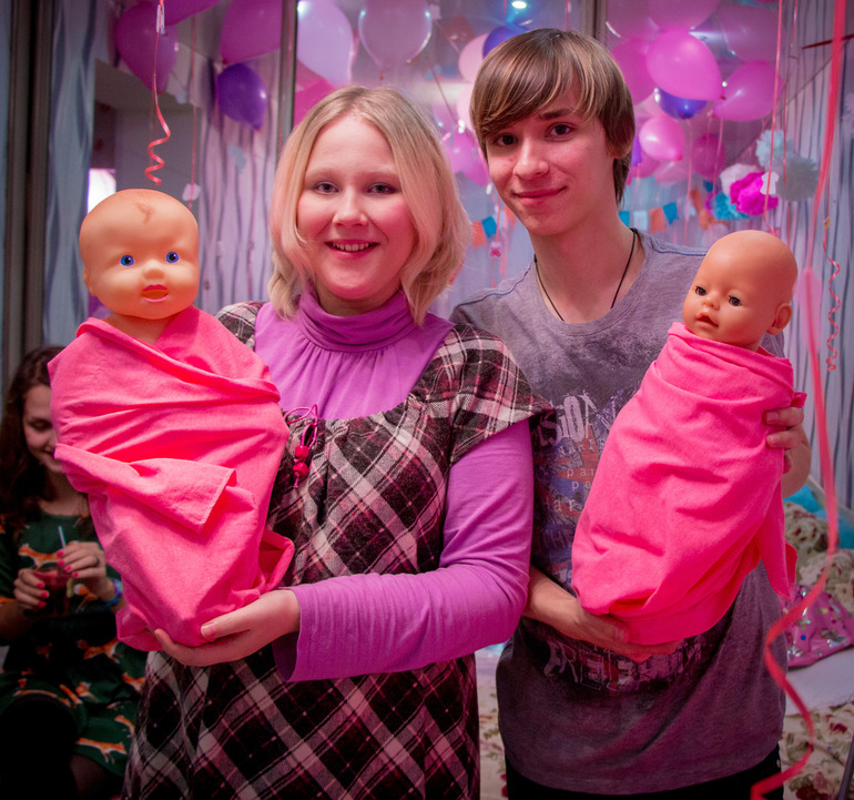 следующим каверзным развлечением было ПЕЛЕНАНИЕ) в английском есть фраза fail miserably, не знаю как ее правильно перевести но это именно то что мы сделали) безбожно провалились, причем все)))) включая мать двухлетнего Арсения и меня, кому через месяц дадут в роддоме ребенка и пеленку))) это с виду кажется так просто а на деле нихрена! у меня получился монах в халате) еще конечно лица этих кукол....кстати рядом с нашей машей - беби-борн сережа))) мы ржали над ними весь вечер))))