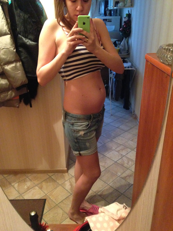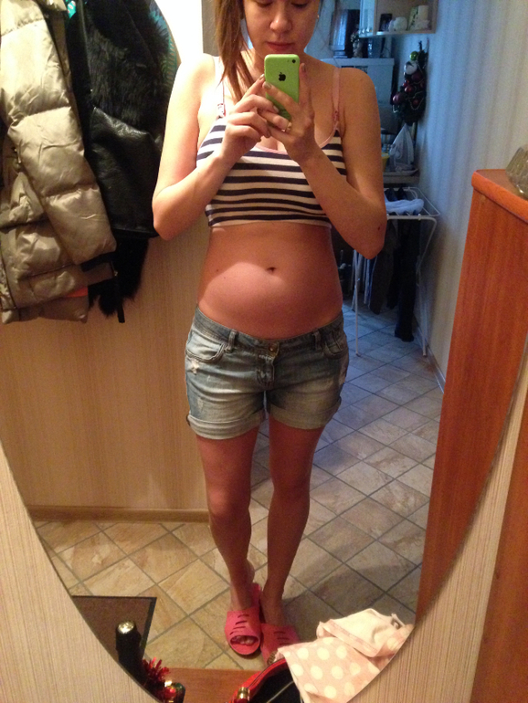 Какая фигурка) У меня такой живот на 16 недели был. Сейчас чувствую себя бегемотом, боюсь представить своё пузо в 40 недель((( +10кг...интересно куда они все пошли??))