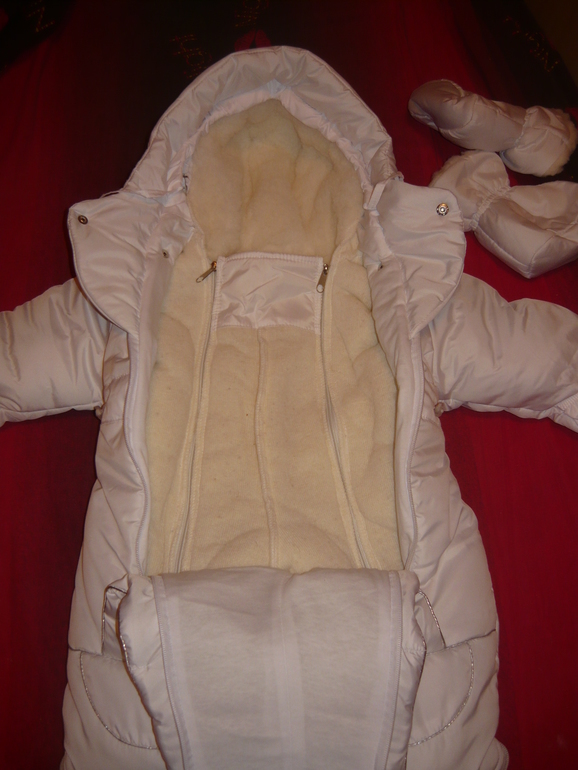 Погода, у нас не пойми что. Позавчера было -30, сегодня -2. Ориентируюсь на среднюю температуру -15-20. Да и до машины идти из роддома, а потом из машины до подъезда, реально 10 шагов. Поэтому, особо не хочу, дочу укутывать в тридцать пять слоев одежды)
