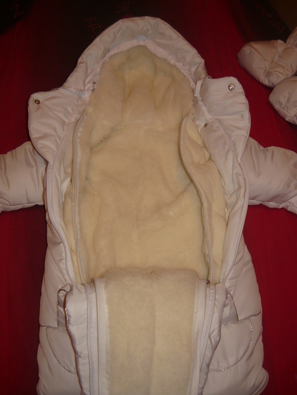 И еще нам мешали руки месяцев до 9,поэтому без пеленания никуда...или флис одеялко,а сверху пуховое или прям в комбезе руки по швам или сверху одеялком прижимала ручки уже в коляске