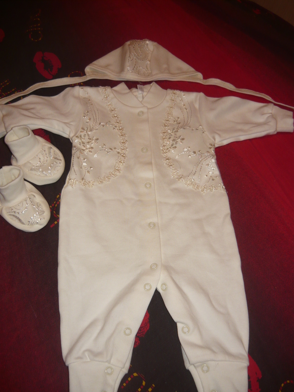 у меня позожый вариант одежды,только велюровый слип к телу не очень,под него взяла ползунки с боди.только боюсь не утонет ли он в комбезе...