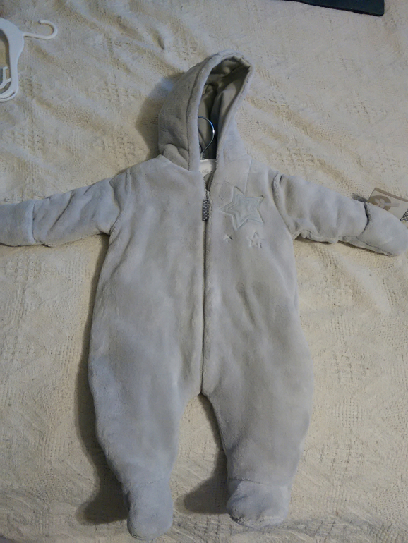 И ещё зашла сегодня в mamas&papas там по очень выгодной цене 800 р. за комбез на весну и 300 за слип. Так уж весной тоже есть в чем гулять. Сорри на фото цвет искажен, комбез очень приятный серого цвета, а слип темно синий. Качество отличное. Скидка на них 70%.