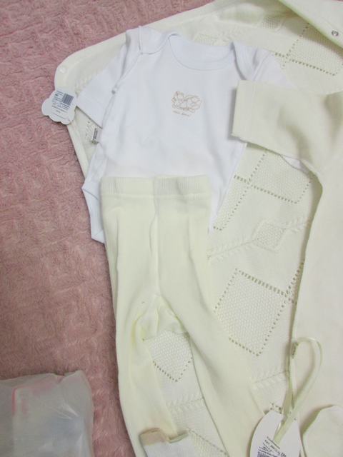 Дальше вот такой слипик уже нарядный, шупетовский, не могу сказать, что это то, что я изначально хотела, но когда в магазине я покрутила его в руках чуть дольше по времени, чем все остальное, муж мигом отнес его на кассу, чтобы больше не слышать, что нужно купить что-то на выписку! ))