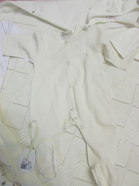 Про подгузник, думаю, все и так поняли, потом бодик с длинным рукавом, носочки, колготочки (тапки прочь, я дочку выписывала в колготках, очень тепло и удобно на мой взгляд, лучше всяких ползунков)