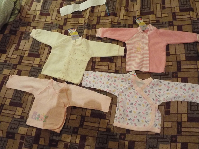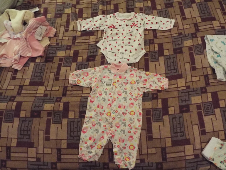 Решила 56р не брать сильно, т.к. сын родился 56см и сама тоже. Немного вещичек есть от сына, совсем мало, тк давала сестра. Думаю на первое время хватит, еще хочу купить непромокаемую пеленку правда еще не нашла такую, так есть 3 бол и 3 мал пеленки, 2 постел.комплекта, 4 простынки. Еще купить надо пододеяльник красивый на выписку, 2 пеленки на выписку, шапочки хб и теплую (2 чепчика есть), пинетки купить 1 пару (носки шерст есть), носки махровые 3 пары (тонкие есть). Все-таки кофточки или распашонки купить 62р т.к. без памперса все равно будет с ползунками ходить (около 10шт есть раз.разм), купить надо длинные ползунки 62р 2шт. Думаю еще нужны кофточки тепленькие 56,62 по штуке наверно, еще слипы типа велюр тепленькие 56,62 по штуке. Вот и все наверно. Царапки есть. 68 размер потом буду брать, когда родимся, до лета еще будет время, наверно по инету закажу.