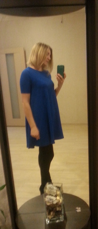 Купила себе сегодня пару свободных вещей и понимаю, что я просто жиробас ну или я Б)))) Набрала я 1,7 кг ну не мало для 10 недель ну и ни капец капец. Смысл вообще вот в чем, как вам кажется синее платье выдает, что я шифруюсь? Ну с другой стороны обычное уже выдает, что кто то много кушал как минимум, ну зная меня, все поймут что просто меня уже не одна). Еще есть вариант с туникой, но она тонкая очень и тоже иногда прилегает к кругляшику