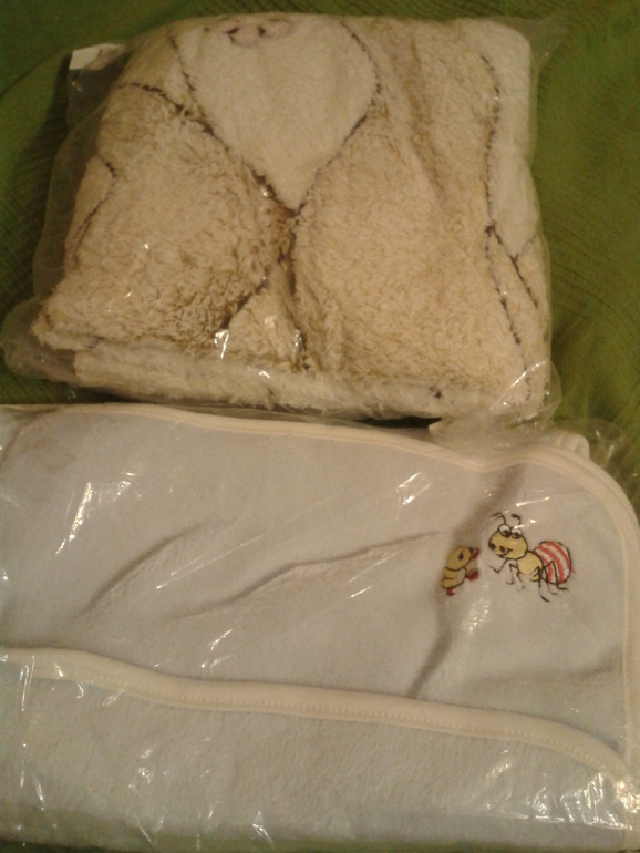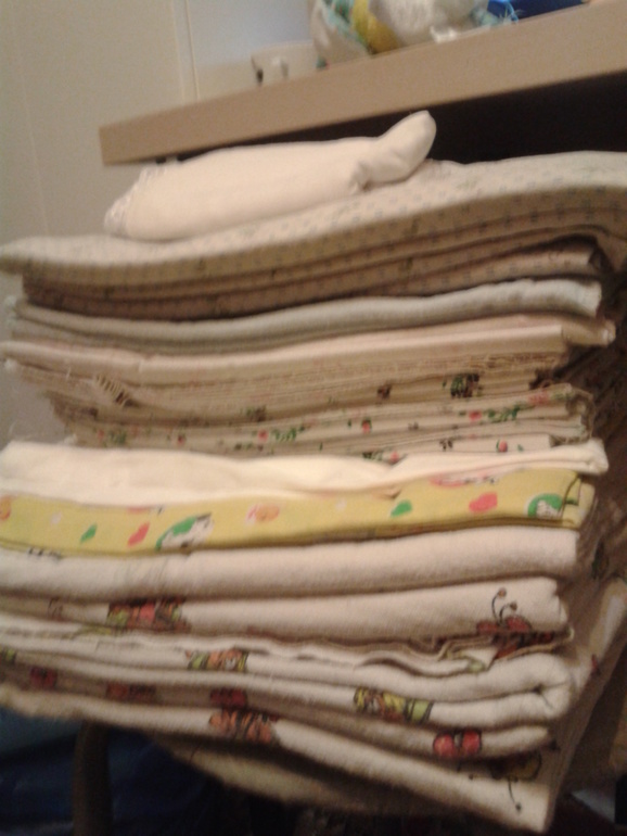 Еще есть вот такая стопочка пеленочек и 2 мягусеньких покрывалка)голубое-новое) пеленочек новых еще приобретем)