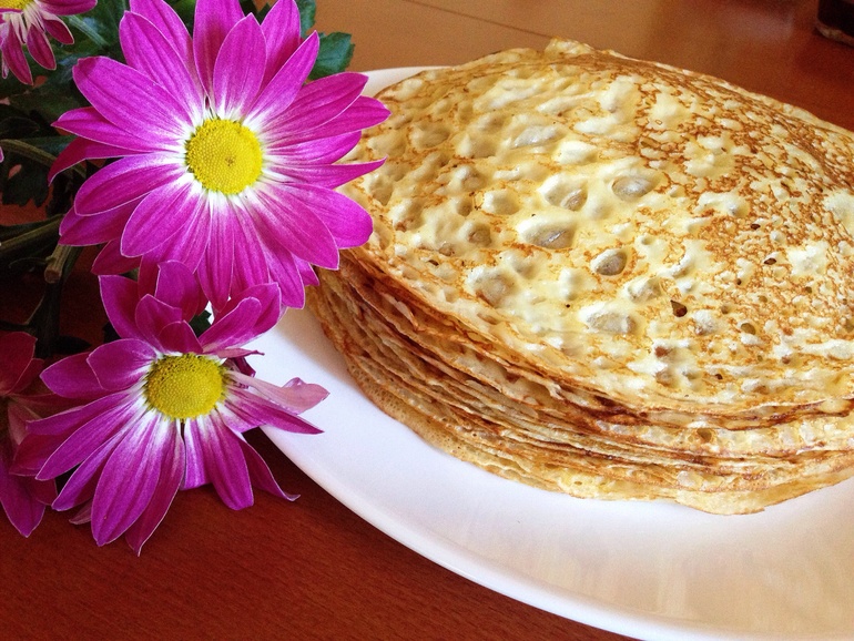 блины - вкусно, конечно, но как говорится "растижопка"...а если учесть, что жопка у меня растет неумолимо, то для меня все это непозволительная роскошь))))))....хотя блины более или менее диетические — на 1,5%-ом молоке, без сахара и почти на 80% из кукурузной муки))))