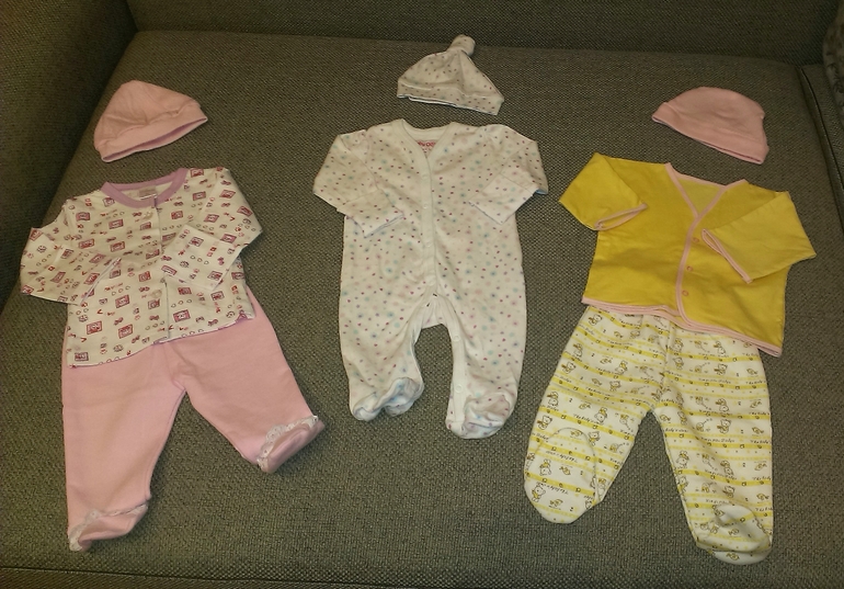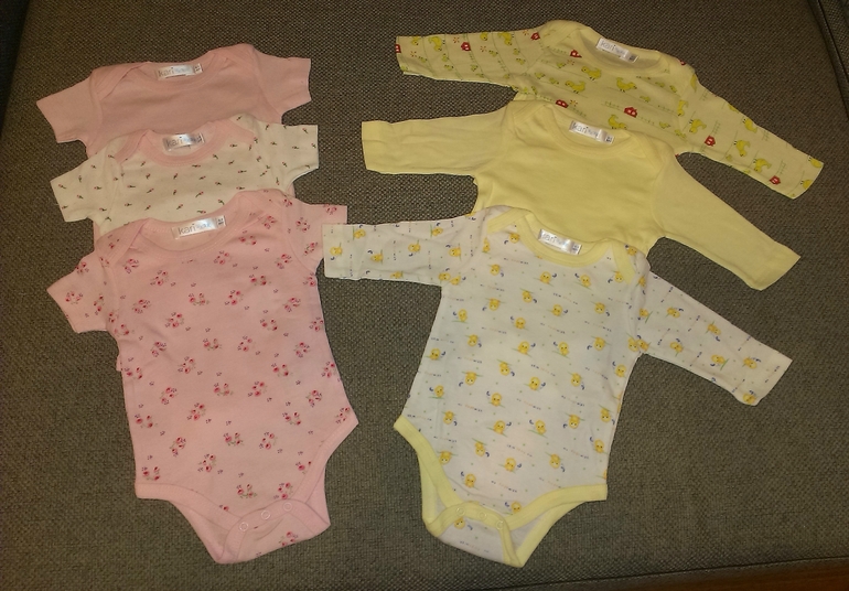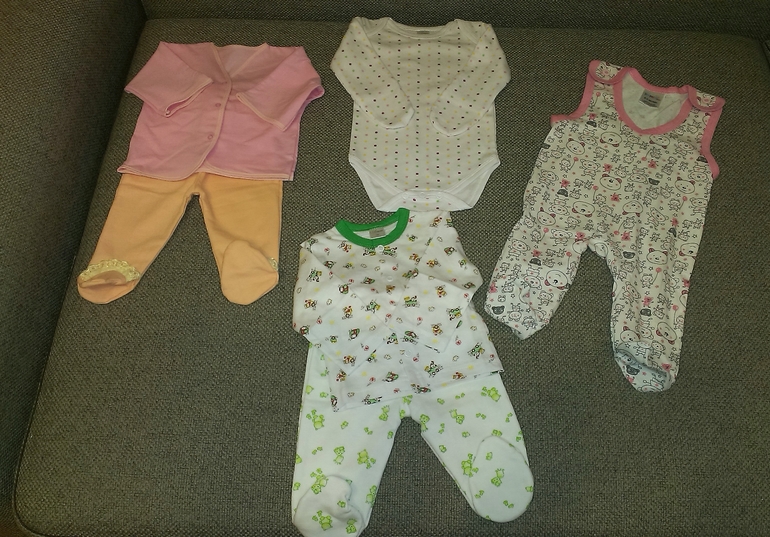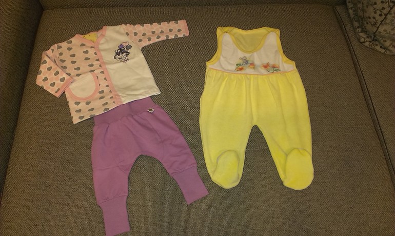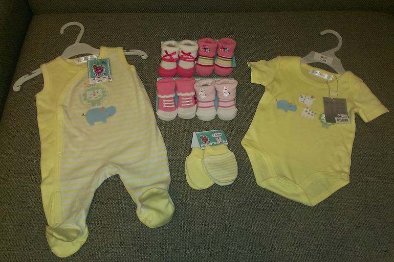 Теперь вещички. Вещичек не так много, покупала только на первое время, дома ходить в основном. Всякие красоты буду покупать ближе к лету, да и тетя пришлет очень много девчачьих платьев из Питера. Так что на первое время все простое, не супер дорогое, но хорошее по качеству и очень приятное на ощупь :)