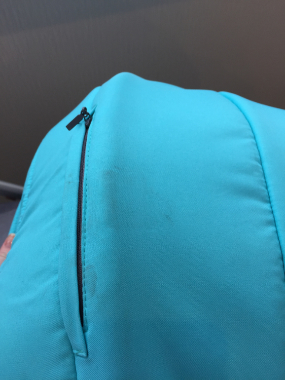 материал маркий-ну я же хотела яркую))) буду стирать скоро! это место капора неснимаемое-буду тереть спец пеной.. из-за этих отпечатков нам дали скидку.