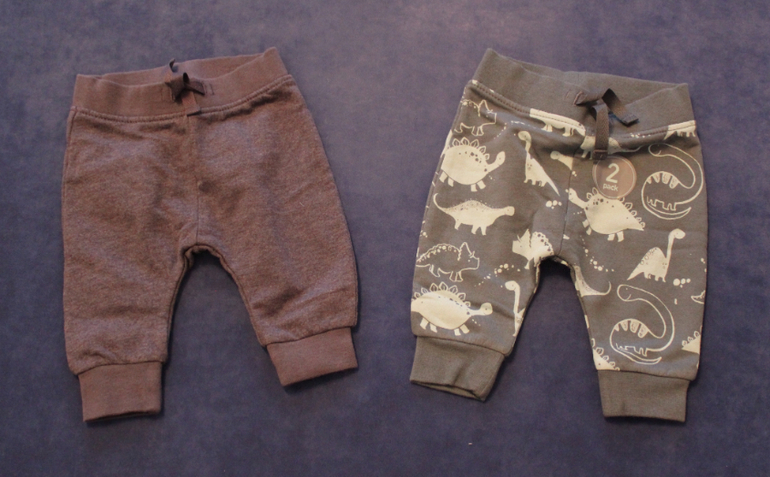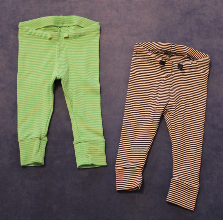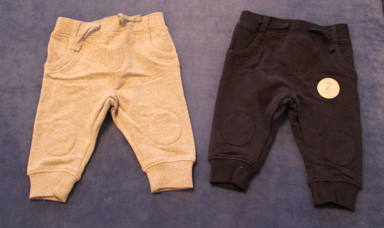 Такая же случайная покупка :) двое штанишек 68 размер.