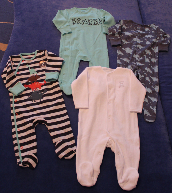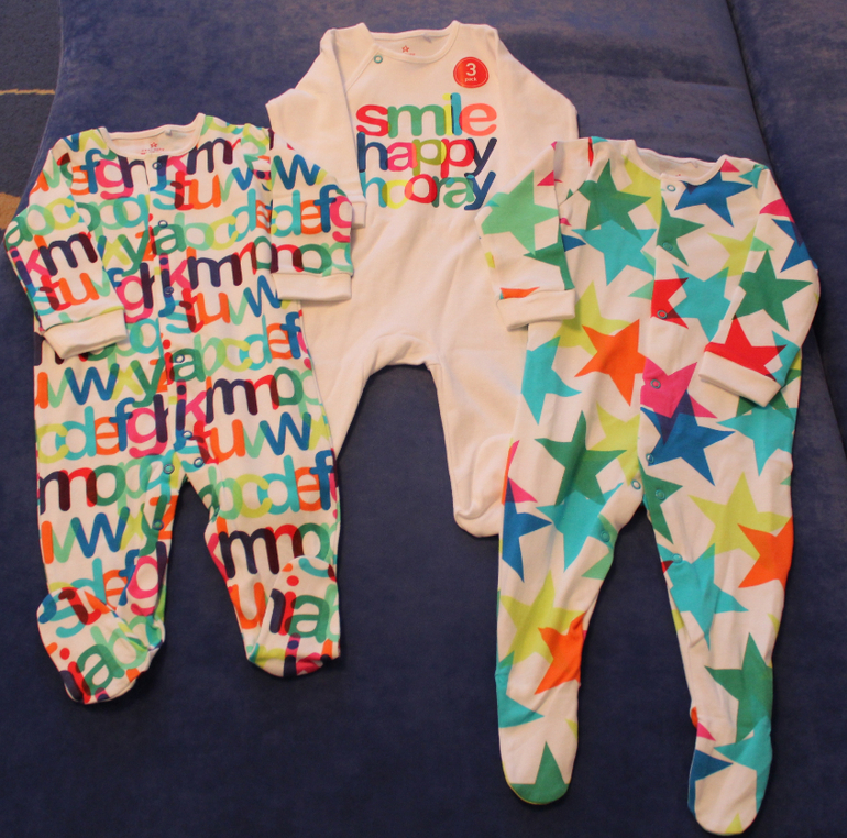 Был случайный забег в магазин и просто понравились слюнявчики, два бодика (68 размер) и комбез с ушками для малыша на выписку (56 размер) (под термо-конверт).