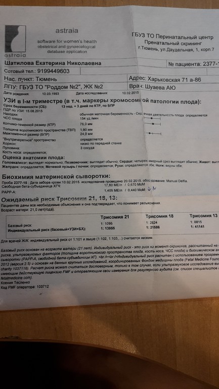 Такая же история ))) Сходила к генетику — развеяли все опасения. Риски-то низкие, а они расчитываются индивидуально под ваш вес-рост-начиональность и прочие факторы. Так что даже не переживайте — риск синдромов Дауна и Эдвардса, а также множественных патологий у вас низкий ))) По УЗИ тоже всё в норме и признаков уродств нет.Всё у вас отлично