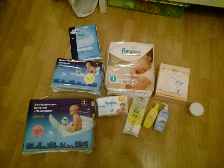 мелочи в роддом и для дома одноразовых пеленочек прикупила.