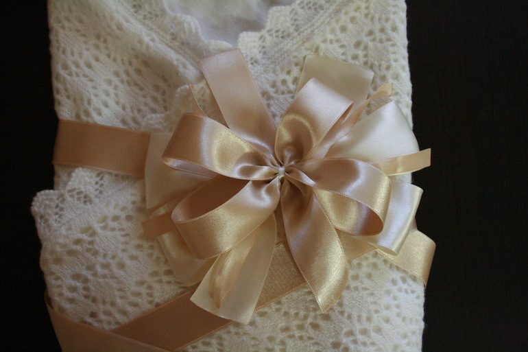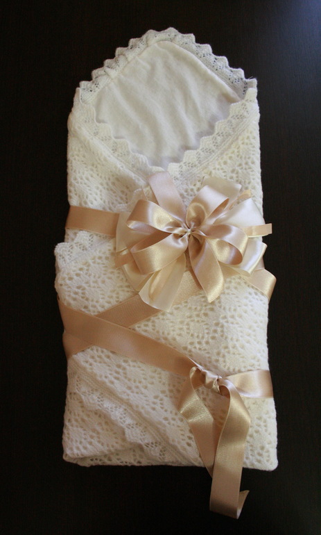 Размер маленький оказался, как по мне...у продавцов указано было 70-80, в итоге на этикетке 66-77(( та и визуально маленький, для выписки и если крестить в первые месяцы, то подойдёт, ну и по укрывать малыша до полугода, больше я не нашла размер, именно этой модели, долго искала, ещё с конца осени... купила за 305 с доставкой укрпочты, брала через инет...Бант сама делала, но честно, хочется другой, большой, розовый, во много слоёв... но так как мы пол пока не знаем, всё нейтральное...