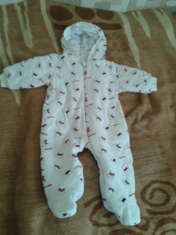 вот наш комбез на первые прохладные вечера, размер 62, сверху велюр,на тоненьком слое синтепона)