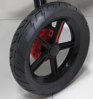 Многие не хотят связываться с надувными колесами, а им заменой были пока-что только колеса ПВХ. Теперь есть более достойная замена.P.S. Сразу ощутил руками разницу, когда ее прокатил по плитке, стыки мягче проходит, чем ПВХ и общий ход без этой вот "мелкой тряски".