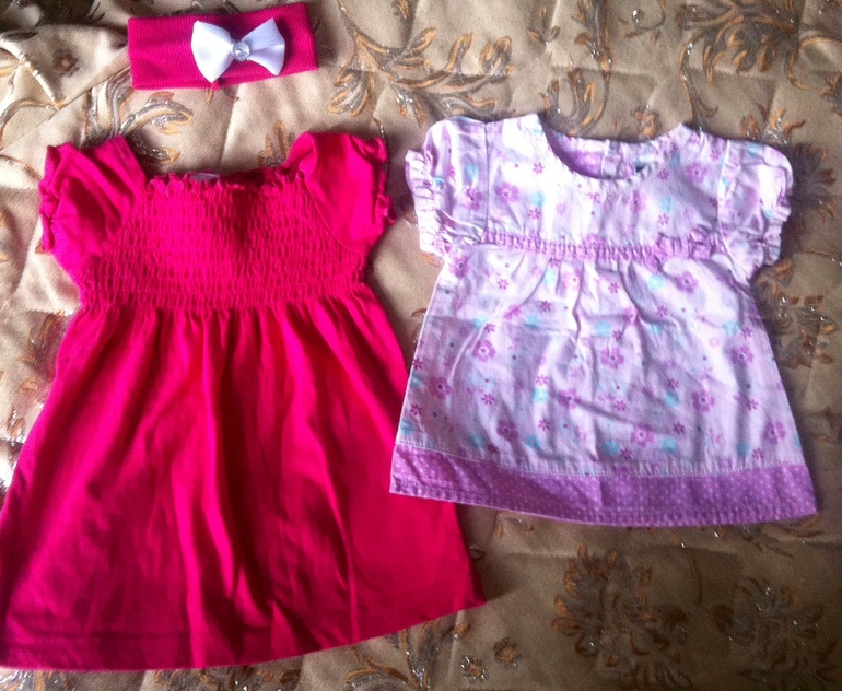 И еще, по дороге домой с УЗИ дай думаю забегу на почту, нам уже частями приходят посылочки, вот такая красота для масички нас ожидала (фото так себе, помятое, но такие милые эти платюшки)
