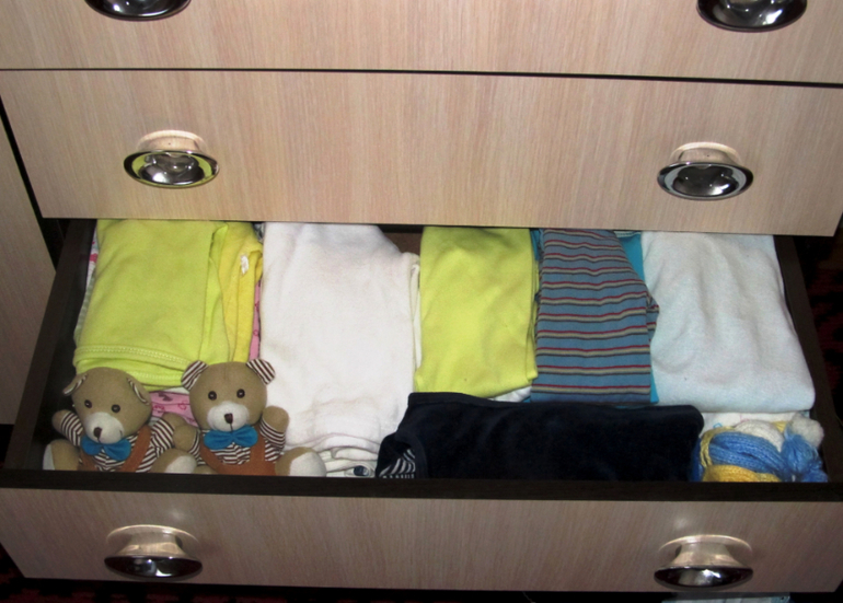 Да я сама вообще не смотрела еще ничего. То, что лежит в комоде — б/у, от первого внука свекрови, но я все перестирала детским порошком и кондиционером.