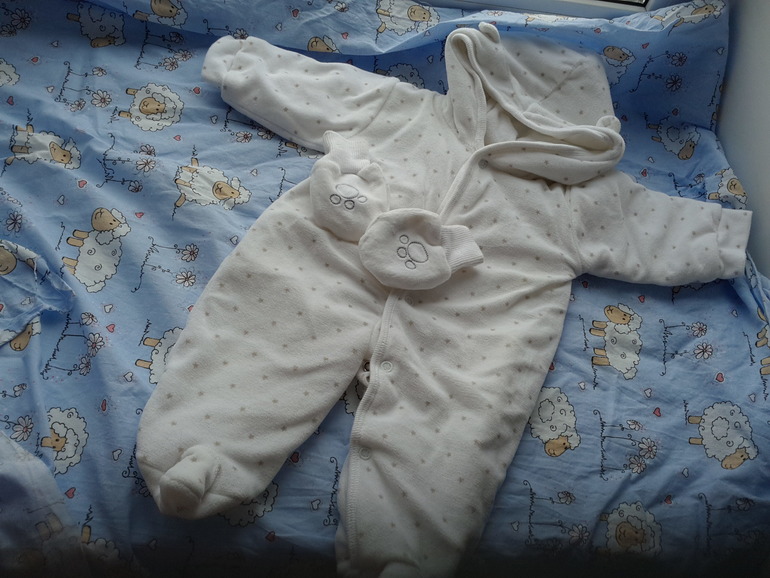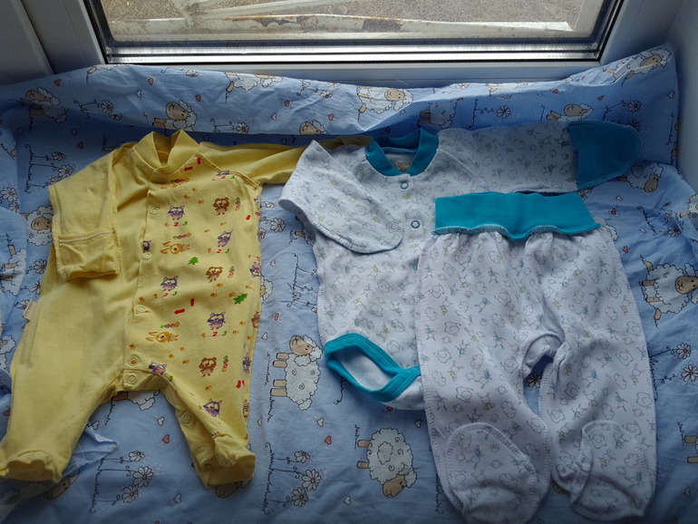 И под низ есть два варианта,не знаю,что будет лучше( Или слип, или боди +ползунки. И там и там швы наружу,все полностью растегивается и отвороты на рукавах. Смущает разница в размерах,слип визуально меньше,хотя маркировка одинаковая - 56 р-р.Что лучше выбрать?