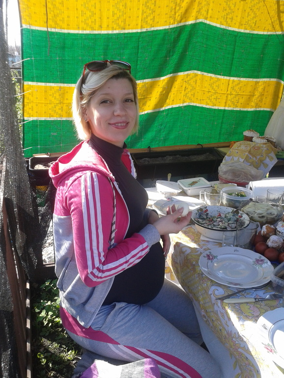 Я прошлую Пасху тоже с пузякой таким была))и в 39 недель родила уже)11 мая. Это я с мамочкой)Наелась и уселась)))