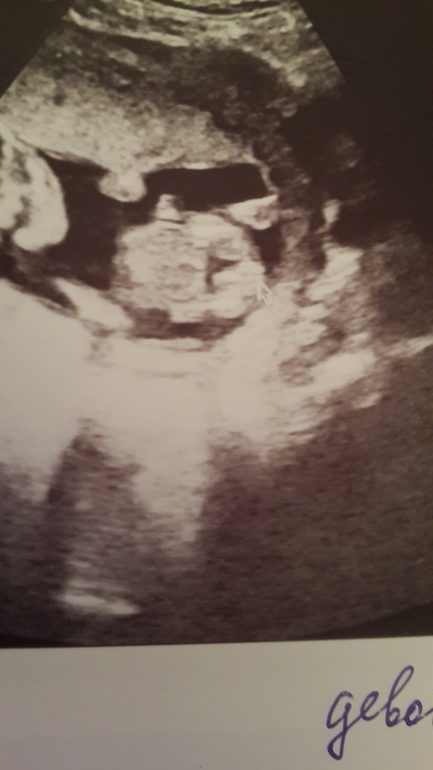 а вот дочка на сроке 21 неделя. Вид со стороны попки, одна ножка согнута