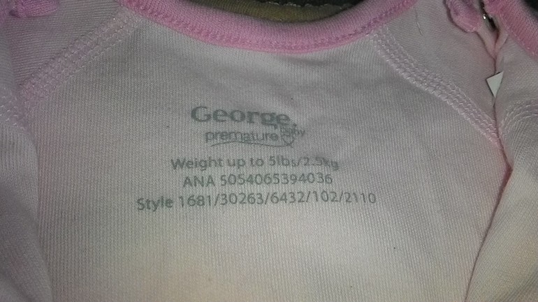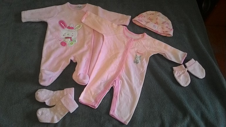 Очень смущает размер в розовом варианте - реально ооочень маленький, на этикетке написано 2,5 кг... сравнила с остальными одежками 56 размера - разница приличная... Старшая дочка родилась 3300 и 49см...