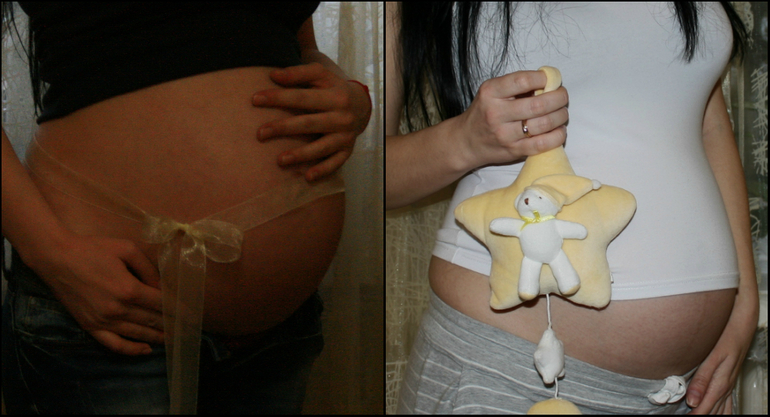 Первое фото сделано неделю назад, всё без изменений, второе на сроке 28 недель, в 2012 году. Освещение разное, но по бледности тела одинаковая, последний мой загар был в 2011 году(