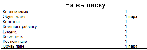 Костюмчик очень красивый!Пеленок — мало. И это даже не для пеленания. Для кроватки малыша тоже нужно постельное + одеяльце. Хотя если лето — то вполне могут подойти пеленки. 1 пеленка (или еще что-то) — подкладывать свернутую рулончиком под спинку малыша, чтобы не перевернулся. Еще одна — застилать пеленальный столик.Туалетной бумаги — нужно рулона 2 или 3.Носков — больше, хотя бы 2 пары, но я брала по 1 на каждый день.Трусики для Вас — тоже в списке не вижу, по 1 паре в день.Футболка — с пуговичками впереди и ночнушка тоже — чтобы кормить ребенка было удобно.Зеленка не нужна в РД, спиртом или хлоргексидином пупочек обрабатывают, пока не отпадет, потом уже и спиртом, и зеленкой.Присыпка не нужна, если есть крем под подгузник, используется или одно, или другоеЯ бы взяла Бепантен — и для груди, и для ребенка пригодится в будущем в случае сильных раздражений.Вода питьевая, печенье(сухарики), чай — это и в последующие дни будет нужноК пустышке взять еще контейнер и держатель для нее.Фотоаппарат (камера)Тарелки — может 2? мелкая и глубокая.Футболка для родовСлипы — много, одежда для ребенка — 1 комплект в день.В каком роддоме рожаете? может еще пригодиться бутылочка для докорма.Отдельно сумка для родзала нужна. Сумка в палату — сверху положить постельное.