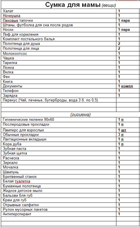 Пеленки увеличила уже)Туалетки зачем так много? Там еще и плдлтенца бумажные и салфетки есть.Мне рожать в июне, я носки вообще на всякий случай беру, сомневаюсь, что пригодятся.Трусики дописалаДля груди я беру кору дуба, а для раздражений буду исподьзовать судокрем.Контейнер, держатель дописалаФотоаппарат(камера) — все на телефоне.Футболка для родов — зачем, если есть ночнушка?Тарелку дописалаСлипы — пусть лучше с запасом, мне так спокойней будет))В третьем.