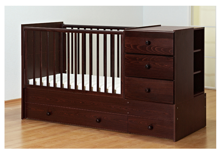 "против" - в основном сделаны из жуткого дсп, маленькие ящики комода и пеленалка, которая стоит высоко и при росте 164 см я не смогла бы там заниматься ребёнком. Если ширина стандартная (60 см), то ребёнок после двух лет там спать не будет - слишком узко. Громоздкая, неудобная, плохого качества. Мы тоже хотели трансформер, в итоге купили обычную икеевскую кроватку и недорогой пеленальный комод другой фирмы с нормальными ящиками.