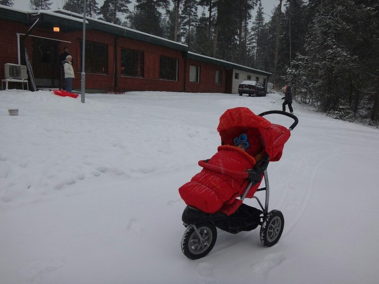 У меня mothercare три колёса, но надувные. Очень маневренная. Не приходится усилий использовать. Одной рукой развороты. Прогулка. Много колясок возила, но лучше этой нет. Но нужна люлька теперь.