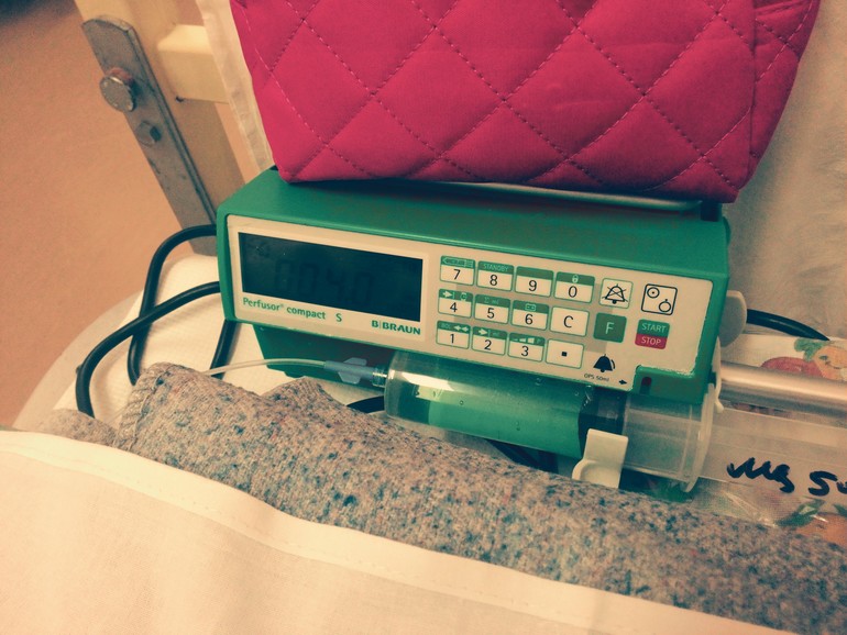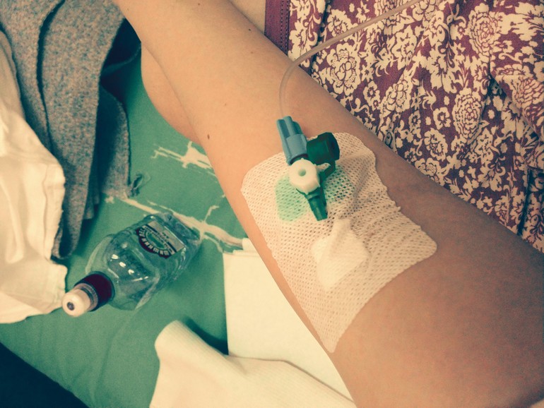 ...сдала анализы, поставили котетер в вену: адская хрень к которой присоеденили еще одну со шприцом магнезии...капали ее 12 часов...с ней же и в туалет и везде...