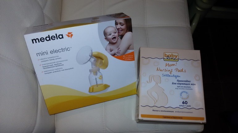 И наконец, я очень довольна, что купила у своей подружки Анюты электрический молокоотсос Medela. Был у меня ручной Avent, но намучилась я с ним, когда надо было сцеживать целую грудь, а то и две (очень уставала рука). Поэтому сейчас решилась на электрический. Прокладки для груди как бонус)) Спасибо еще раз, Анют!:)