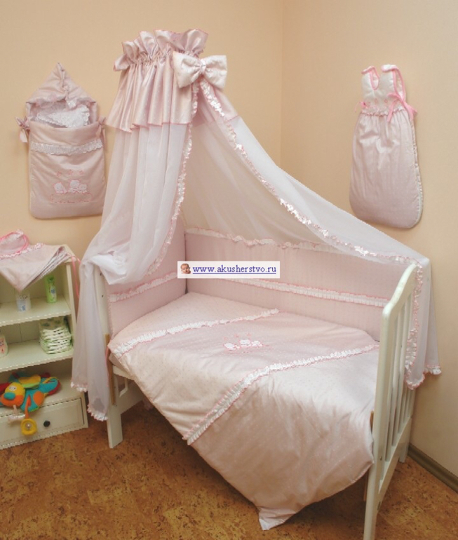 На данный момент куплены простыни на резинке- розового и молочного цвета. Теперь выбор стал за постельным комплектом- бортики, одеяло, подушка , балдахин,простыня на резинке , пододеяльник и наволочка( ну примерно такой стандартный набор) . Постельный комплект мы оставили на подарки- но выбирать его будем сами, т к я планирую под цвет ботиков подобрать матрасик на пеленальный стол. Бортики ставить сразу не планируем. Одеяло + подушка примерно с 1 года. Балдахин( хоть и не нравится и не хотела), но вероятно всего будет- т к у нас зверье и в нашем случае подобный шерсти пыле сборный барьер вероятно всего необходим, но конечно будет частая его стирка.