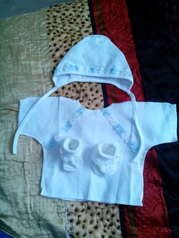 Конверт? Плед? Пеленки? Вы тепличного ребенка растить собираетесь? Или не дай бог перегреть малыша? Если чепчик и распошонку эти брать, то к ним пеленочка (если пеленать хотите) я в середине июля думаю рожать. Моя вообще будет в платье... без всяких пеленок и конвертов. Плед вязаный ажурный на случай ветренной погоды или прохлады.