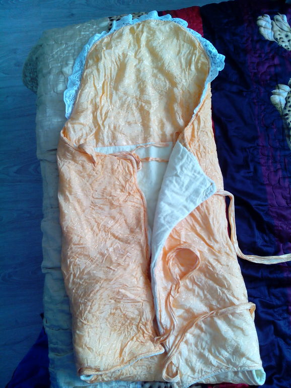 Такой конверт 20-ти летней давности, я бы не стала надевать в наше время...лучше легкий вязаный пледик....