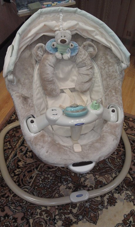 Мебель для малыша (стульчики, шезлонги и проч.)Девочки, может быть у кого-то была такая или подобная штукенция, подскажите, нужная вещь? Качается в 6 режимах, можно закачивать какую угодно музыку